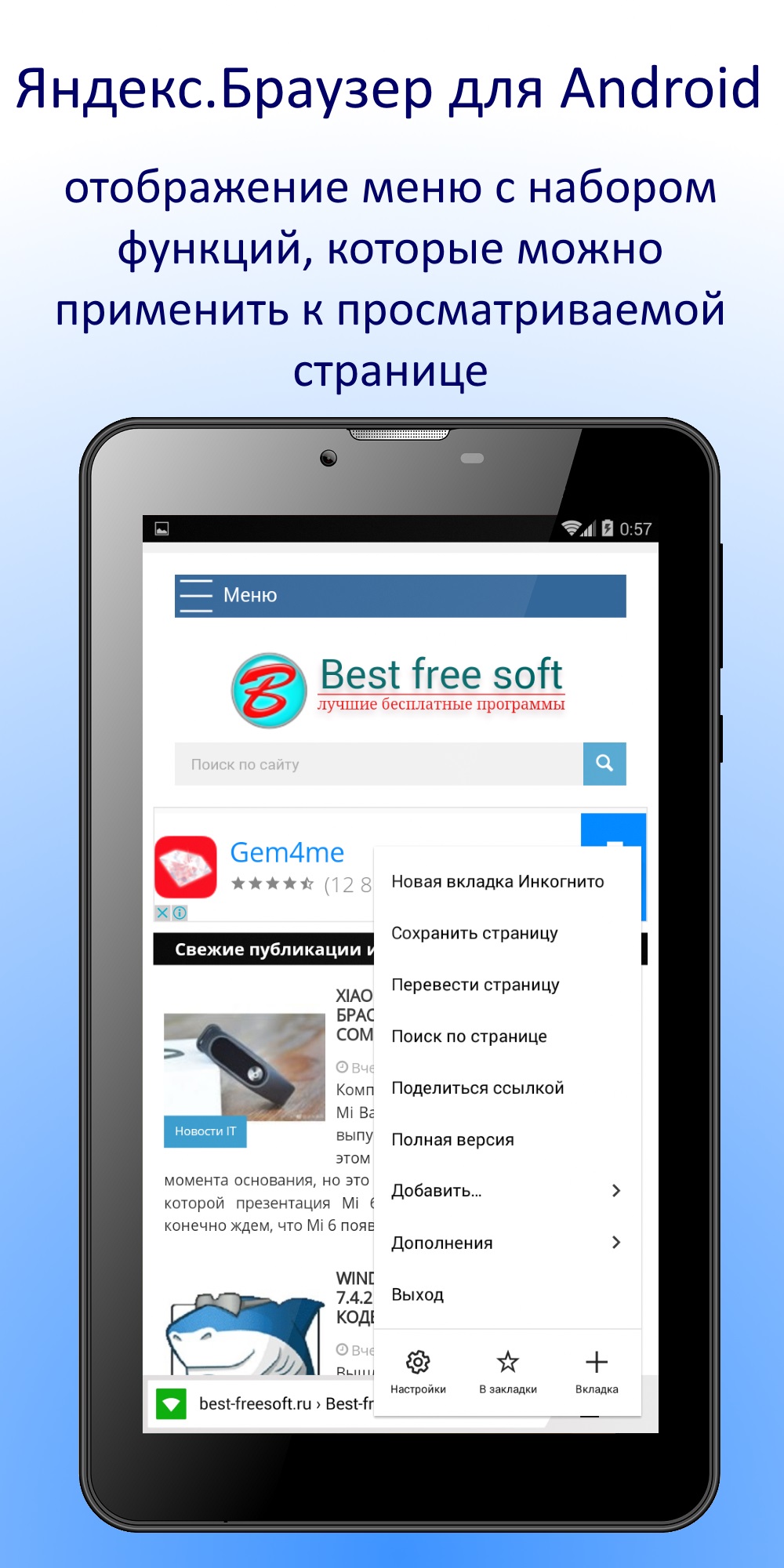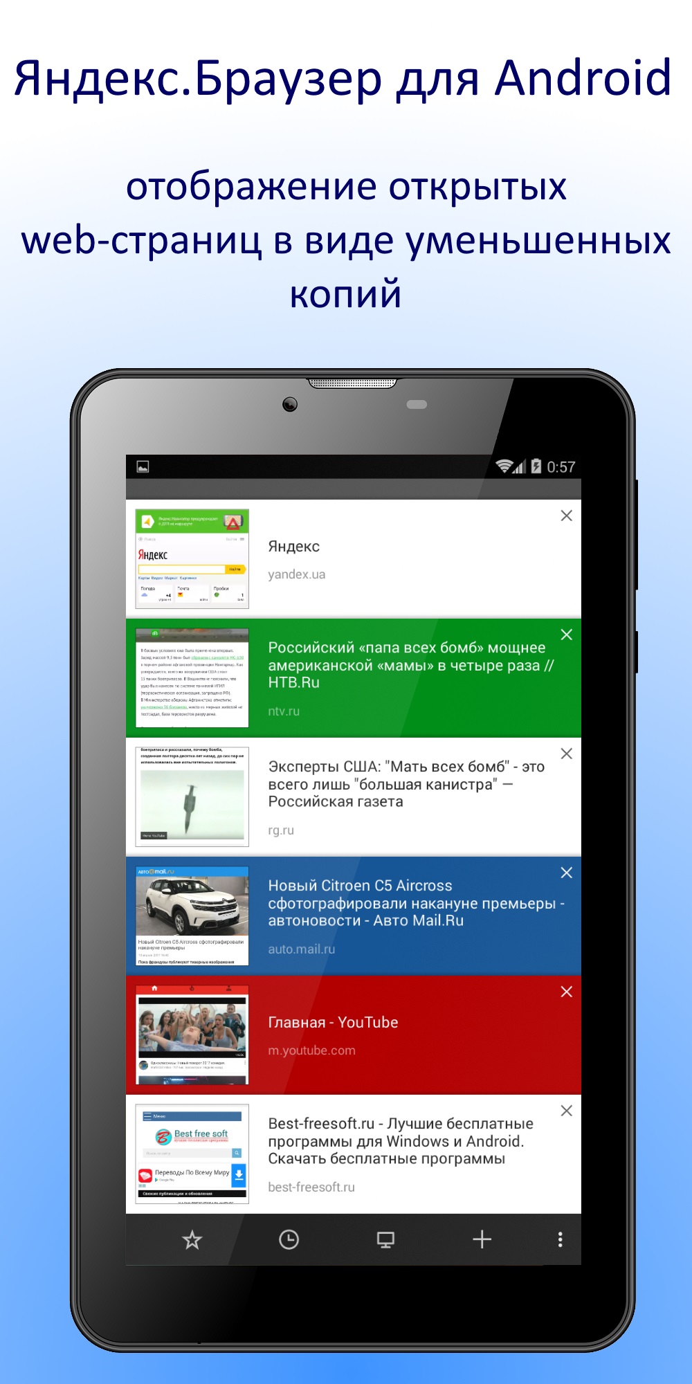 Яндекс.Браузер для Android — один из популярных веб-браузеров для открытия web-страниц на мобильных устройствах под управлением ОС Android. Как и другие браузеры, разработанные на базе Chromium, такие как Google Chrome для Android, Opera для Android или Mozilla Firefox для Android, Yandex Browser обладает высокой скоростью загрузки сайтов, а также картинок и видео, как на смартфонах, так и на планшетах.Главной особенностью Yandex Browser для Android является тесная интеграция с сервисами Яндекс: электронной почтой, онлайн-переводчиком, поисковой системой и др. Также в браузере реализована загрузка и воспроизведение музыкальных композиций и видео, посредством встроенного плагина Adobe Flash Player, и возможность просмотра PDF-документов. Кроме этого, пользователь непосредственно в Yandex Browser может выполнять следующие действия: синхронизировать свои закладки в Яндекс.Браузере между компьютером и своим мобильным устройством с помощью аккаунта в Яндексе; расширять функциональные возможности браузера посредством установки дополнений; переходить в режим чтения, который убирает все интерфейсные элементы, не относящиеся к читаемой публикации — рекламу, меню сайта, кнопки, социальные виджеты и прочее; ускорять загрузку веб-страниц при помощи режима Турбо, что делает пользование интернетом комфортным, даже при низкой скорости подключения.