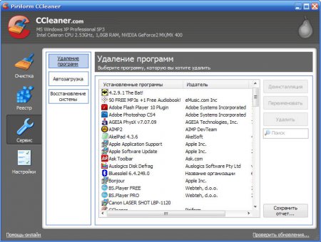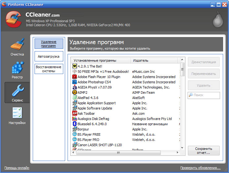 CCleaner чистит следующие компоненты системы: