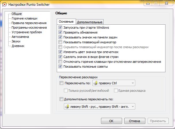 — Возможность изменения стандартного сочетания клавиш для ручного переключения раскладки.