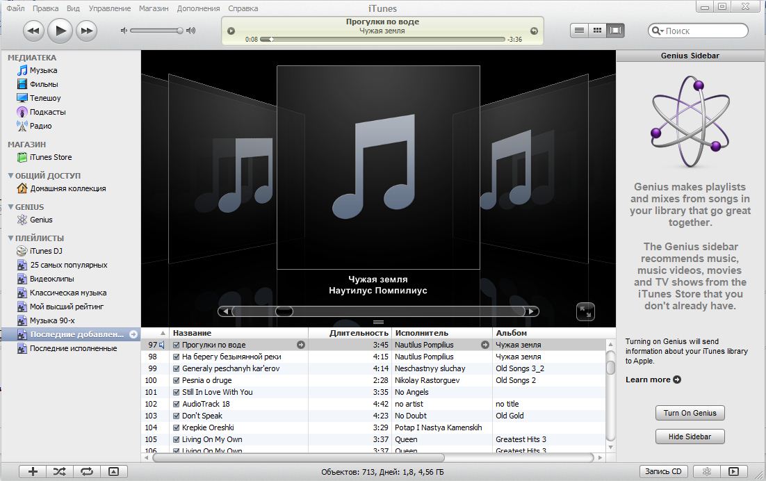 – Технология создания плейлистов Genius (при выборе трека программа предложит подходящие композиции из интернета).