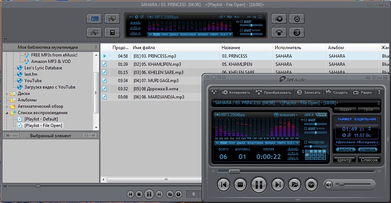– JetAudio обеспечивает полный спектр опций работы со списками воспроизведения.