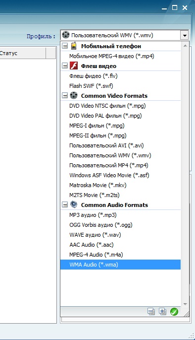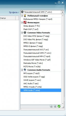 – Конвертация в форматы: AVI, MP4, WMV, SWF, FLV, MKV, MPEG-1 и MPEG-2, MPG (PAL или NTSC), MP3, WMA, OGG, AAC, WAVE, m4a.