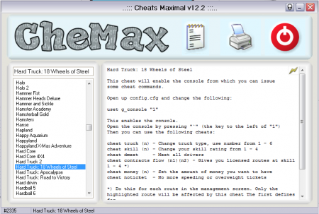– Функция распечатки страницы чит-кодов или сохранения ее в файл.
