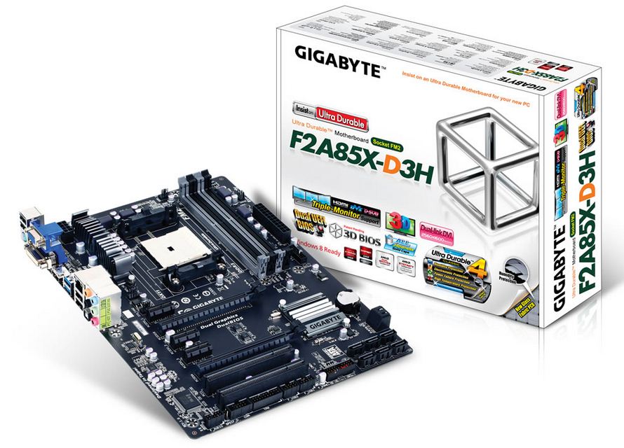 Компания Gigabyte анонсировала новую материнскую плату F2A85X-D3H с сокетом FM2. Новинка использует форм-фактор ATX, построена на печатной плате черного цвета, на базе чипсета AMD A85X. Процессорный сокет получат питание от простой 4+2 фазной VRM.