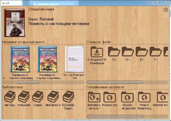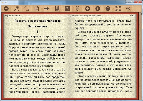 - поддержание форматов: FB2, TXT, DOC, RTF, MOBI, TCR и других;