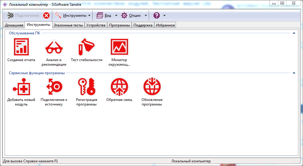 Перечень модулей программы Sandra:
